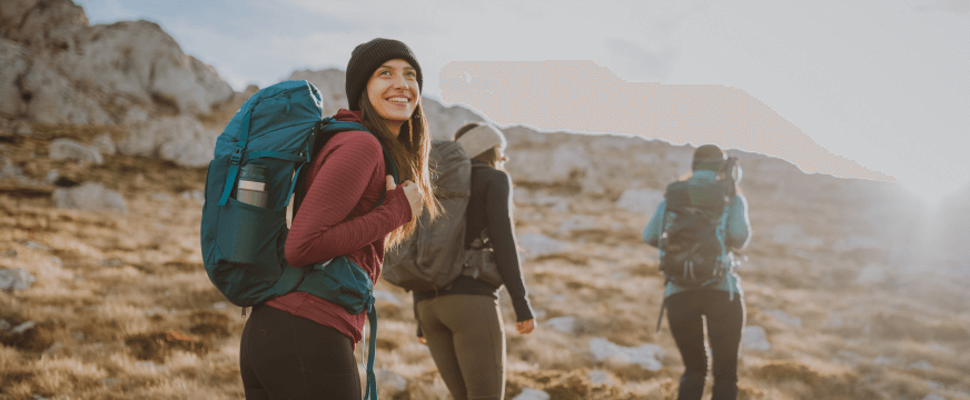 Trije prijatelji hodijo po hribih, športno opremo so si kupili v Alpine nation z  20% popusta