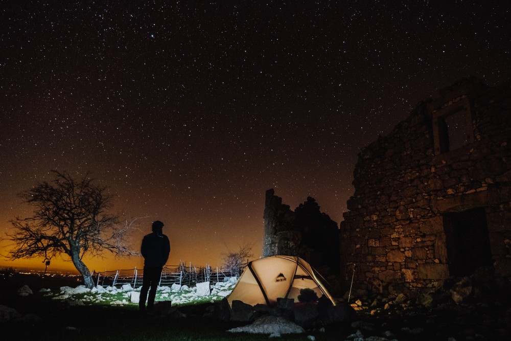 Sam sem spal v šotoru ob opuščenih hišah v Mali Učki, slabo uro hoje od Vojaka, kjer sem ob ruševini postavil šotor, da me je vsaj malo ščitila pred ostro burjo.